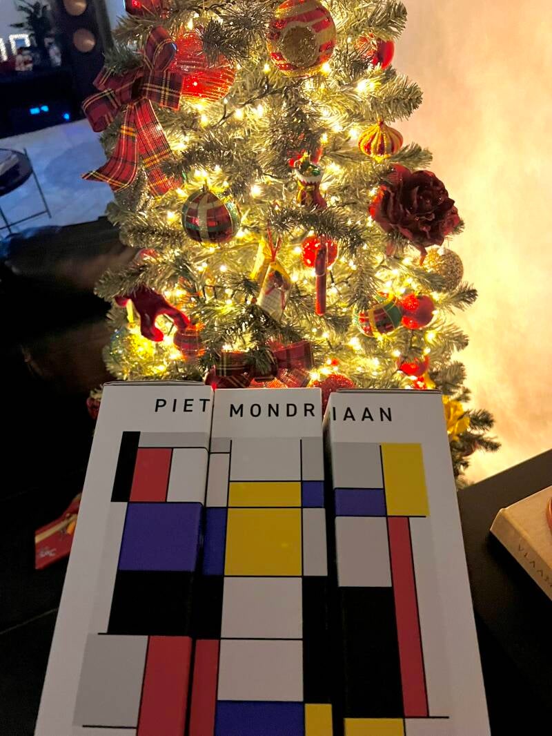 Waarom Mondriaan vraag je jezelf misschien af? Wel dit is de favoriete schilder van Olivier. Hoe kunst zo relevant en jong kan overkomen alhoewel het schilderij op de doos al meer dan 100 jaar oud is, fascineert ons.